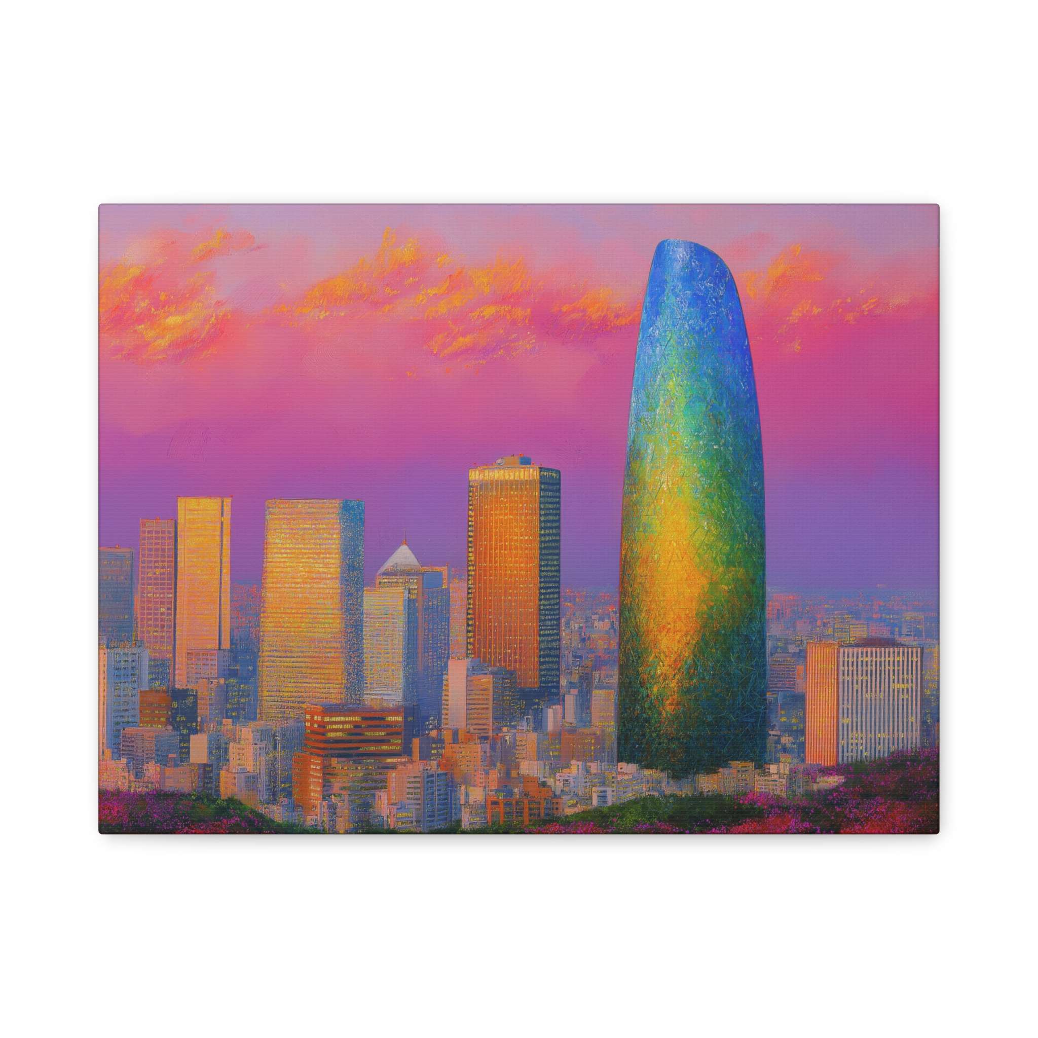 Capture the vibrant energy of a Tokyo cityscape with this stunning canvas print featuring a cluster of skyscrapers against a colorful sunset sky. Perfect for modern decor enthusiasts looking to add a pop of color and unique style to their space. Ideal for home or office decor, this canvas print is a great gift for art lovers and those who appreciate urban landscapes. Suitable for birthdays, housewarmings, or any special occasion.